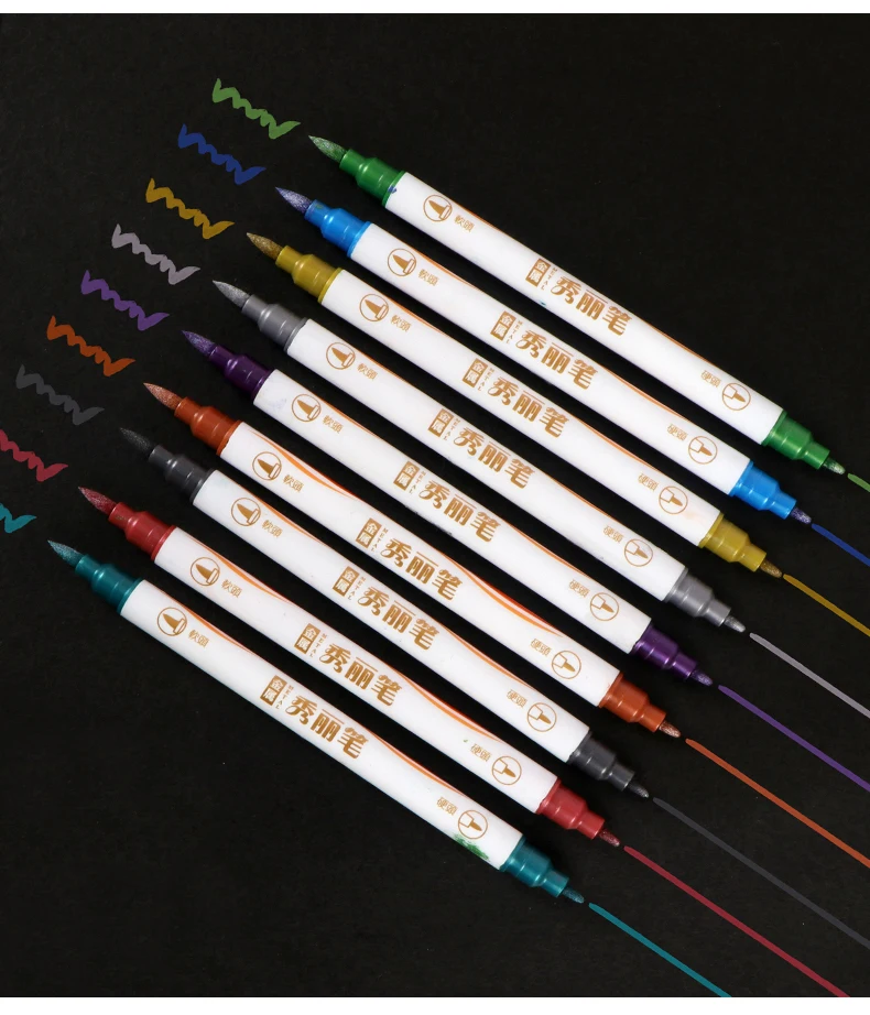 Metallic Marker Pen, 10 Colors, Great for Writing, Office, Stationery, Students, Supplies, Calligraphy, Brush, Office, School