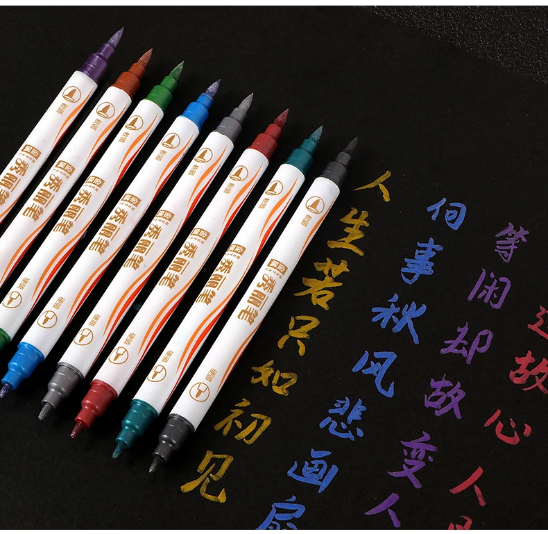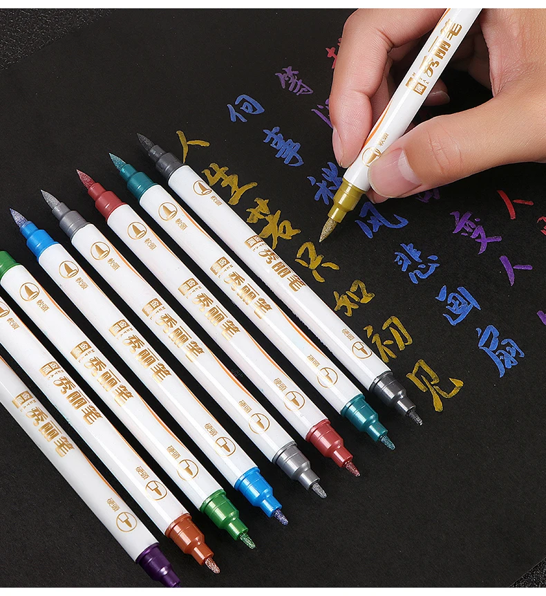 Unlock your creativity with Metallic Brush Markers—ideal for coloring, outlining, and intricate detailing on various surfaces. Perfect for art projects, black paper crafts, DIY creations, drawing, gift-making, customized mugs, rock painting, adult coloring, and festive decorations. Embrace the metallic magic for a touch of brilliance in every stroke.